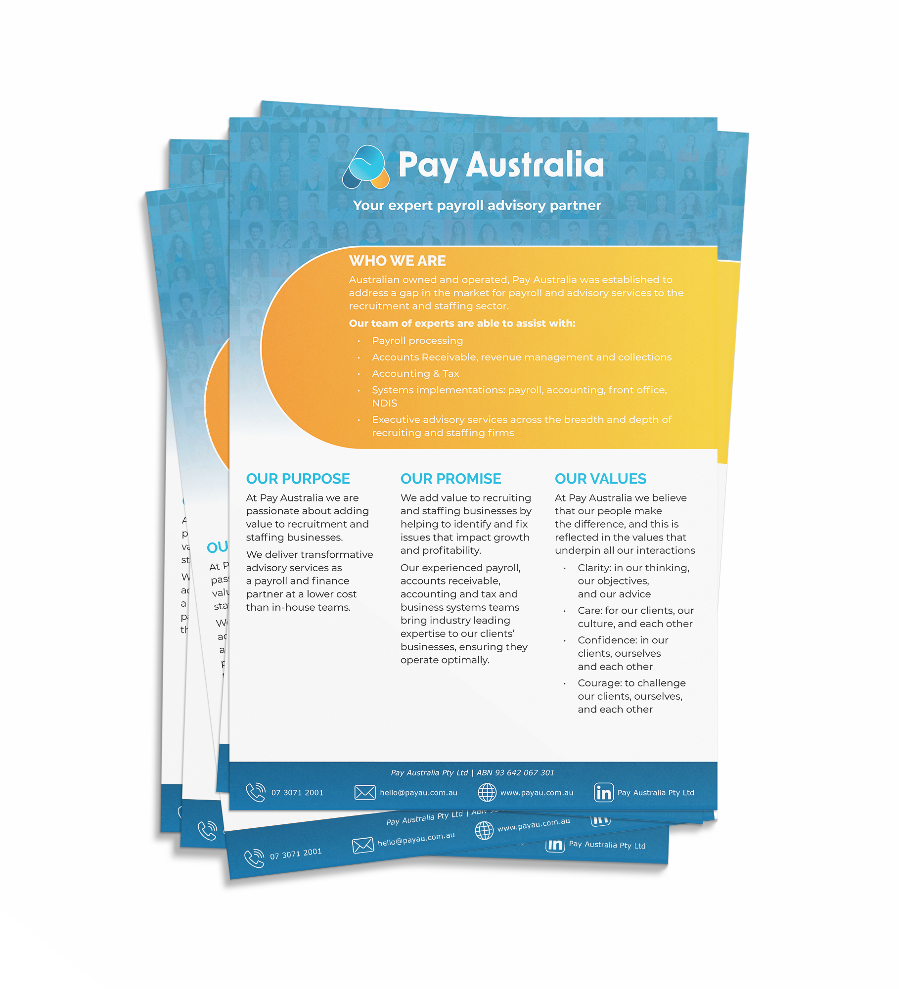 Pay Australia is a payroll and advisory service. They needed a brand that balanced two tricky things: looking friendly enough to approach, but professional enough to trust with your money.