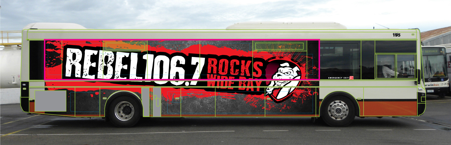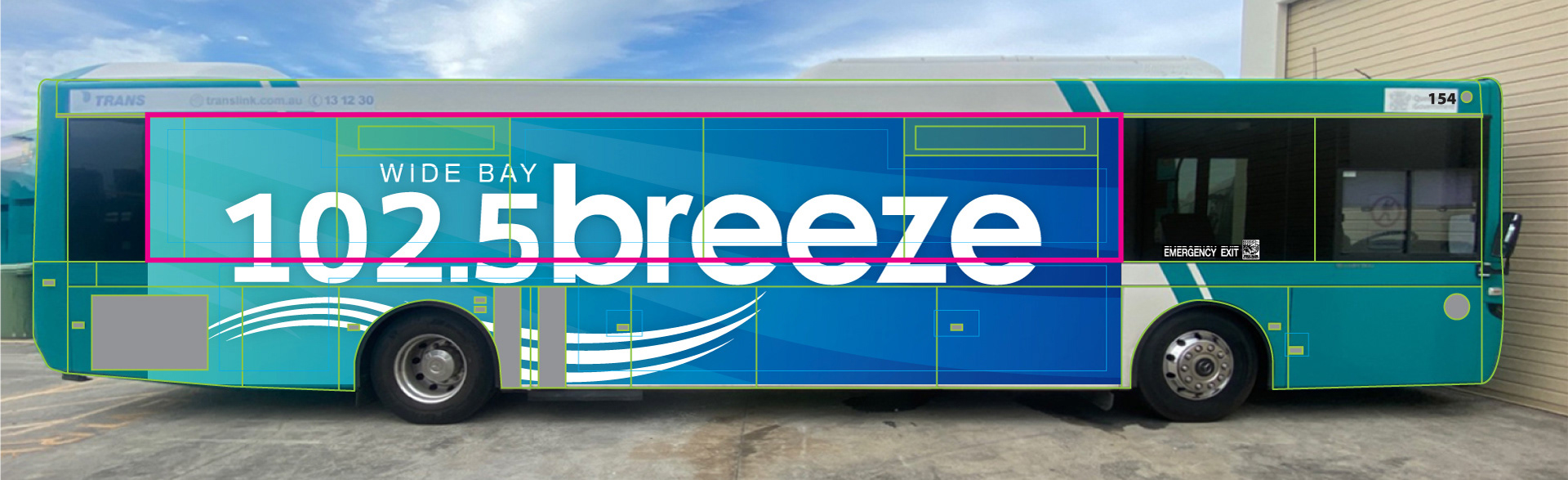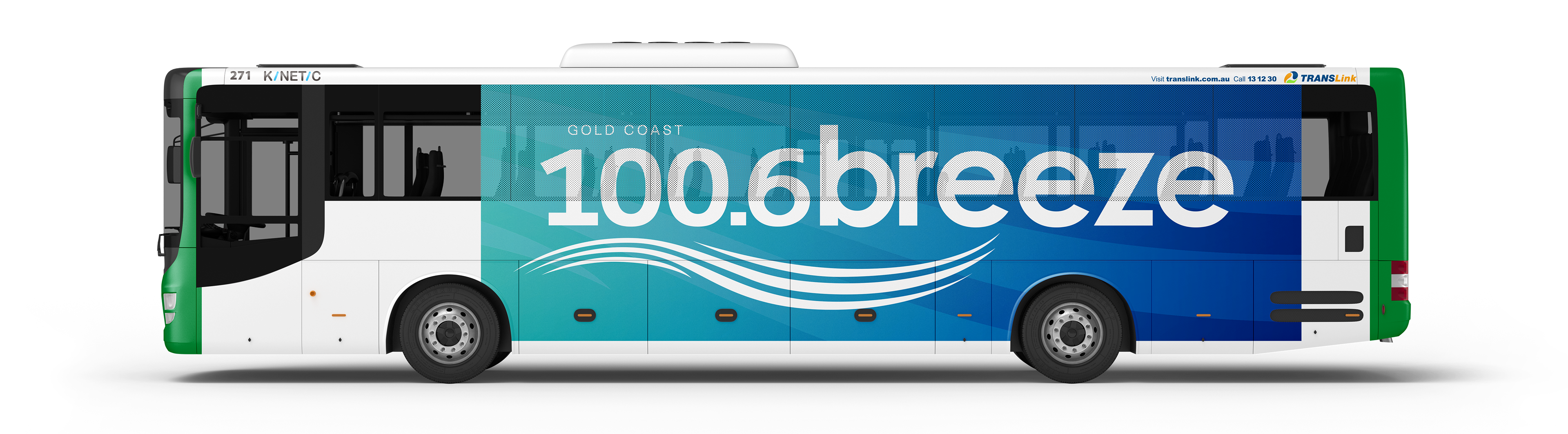 Transit Production: Managed the end-to-end design for full-side bus advertising across The Gold Coast and Wide Bay. I prioritized a 'safe-zone' layout strategy to ensure station frequencies and branding remained unobstructed by vehicle hardware and door mechanisms.