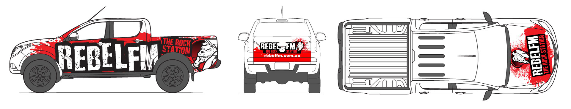 The Rebel FM BT-50, a primary network asset, required a branding update to remove a previous client sponsorship. As the original vector production files were unavailable, I undertook a reconstruction of the livery using photography and technical diagrams. This ensured the new artwork was technically accurate to the vehicle’s complex contours and established a documented "Source of Truth" for all future fleet maintenance and repairs.