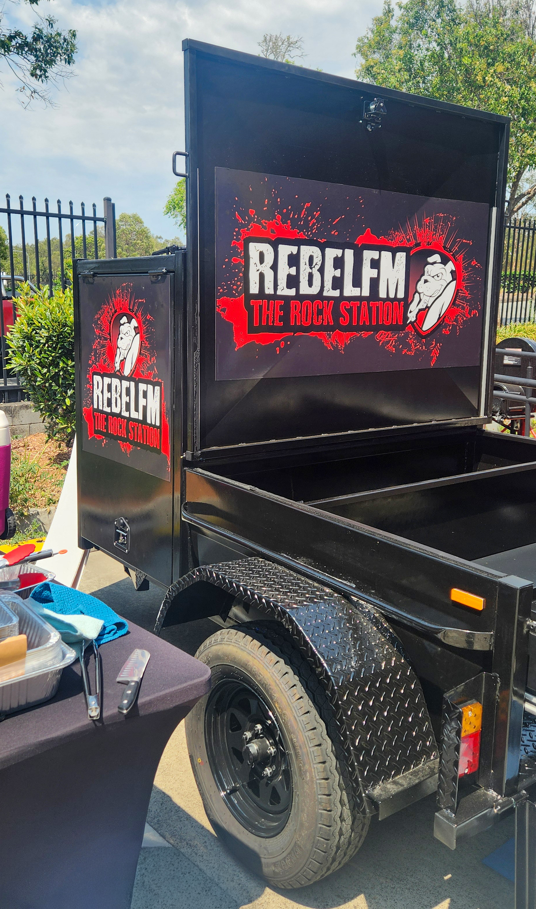 A key addition to the Rebel FM activation kit was the branding for the community BBQ trailer. Rebel FM hosts these regularly with their community partners for charity and as such it was an opportunity to increase the brands presence at these event. Recognising the need for a durable yet flexible solution, I designed a suite of high-strength, weather-resistant magnetic decals. This allowed for an interchangeable branding system that can be easily updated or removed, ensuring the trailer remains a high-utility asset for various community events and sponsorships and a rollout to market specific decals or Breeze FM in the future