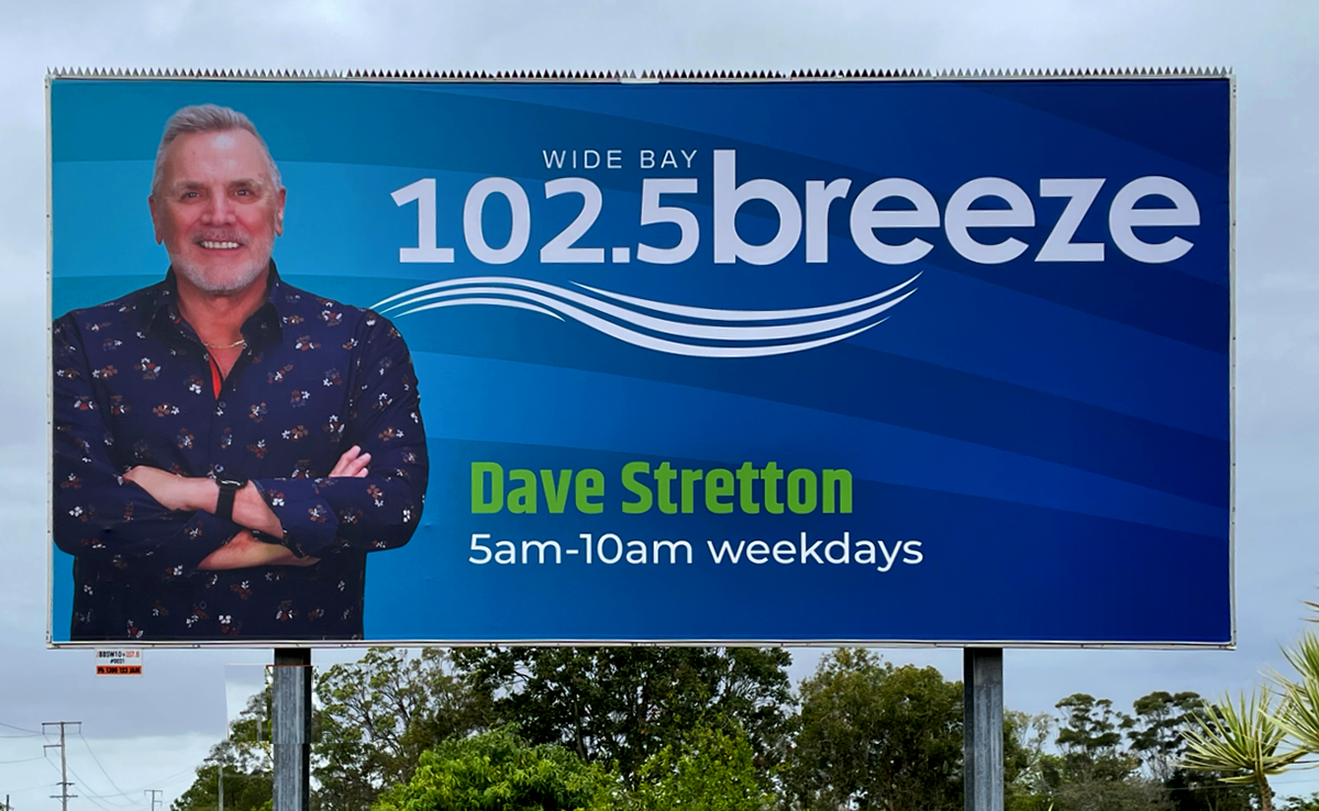 Breeze FM Breakfast show billboard, Located in Bundaberg, I used the newly refreshed Breeze FM brand guide to promote the new Breakfast show host in the Wide Bay area.